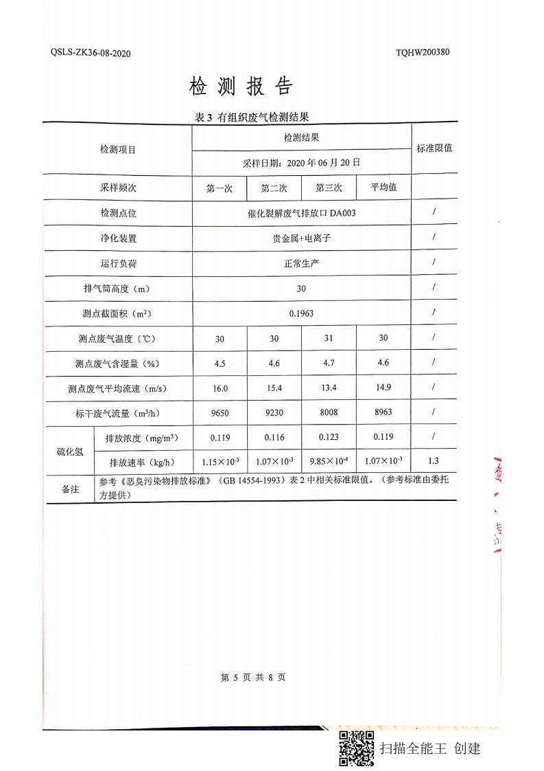 南通市康橋油脂有限公司5月份環(huán)境檢測報告