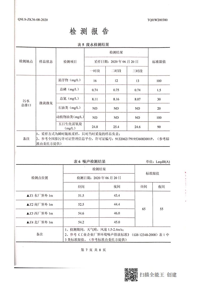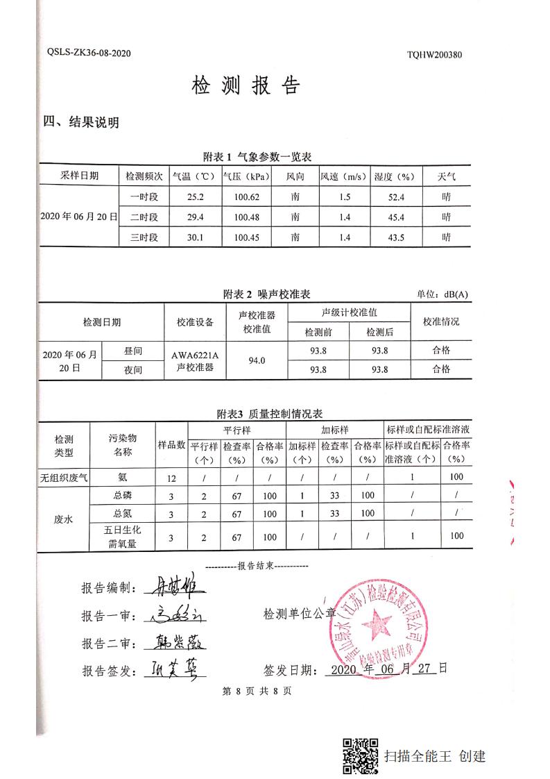 南通市康橋油脂有限公司6月份環(huán)境檢測報告